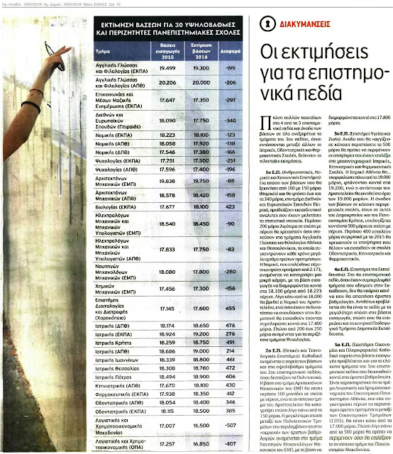 Σύμφωνα με τις τελευταίες εκτιμήσεις που διαμορφώνονται από τα στατιστικά στοιχεία των επιδόσεων, την κλιμάκωση των μορίων αλλά και τις επιδόσεις στα ειδικά μαθήματα που επηρεάζουν την πορεία των βάσεων σε αρκετά τμήματα του μηχανογραφικού, ενισχύεται η άποψη ότι οι βάσεις θα κινηθούν πτωτικά στα περισσότερα πρωτοκλασάτα τμήματα.