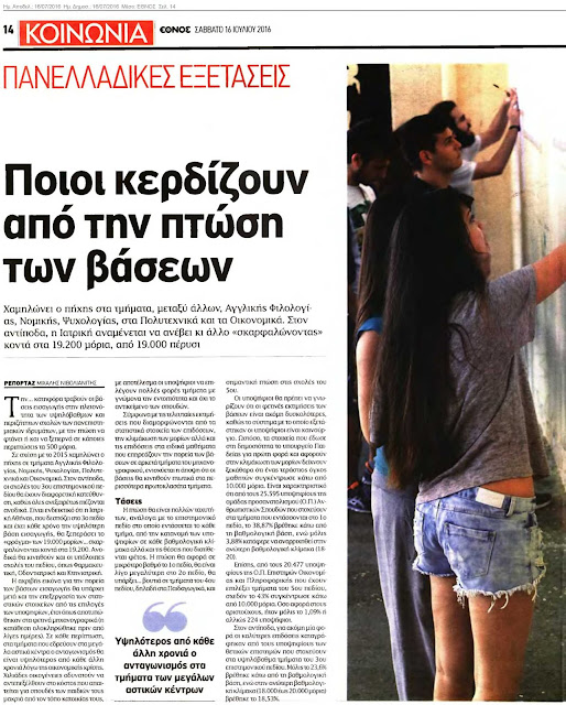 Σε σχέση με το 2015 χαμηλώνει ο πήχης σε τμήματα Αγγλικής Φιλολογίας, Νομικής, Ψυχολογίας,